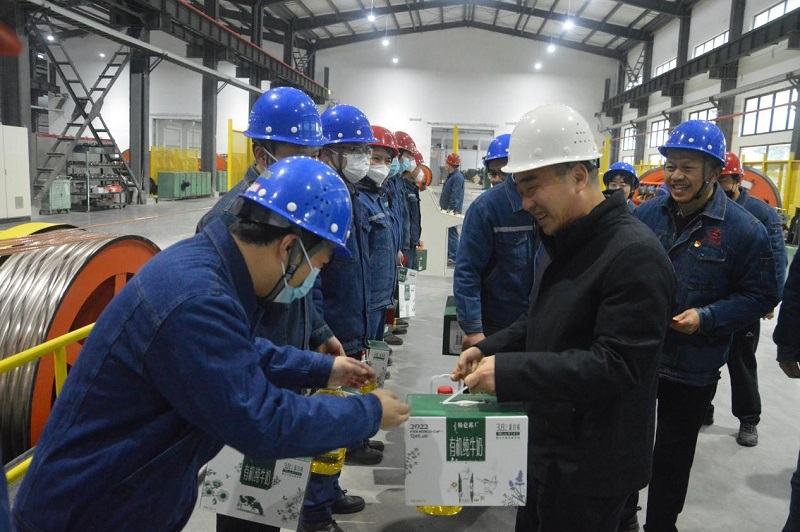 辛董事長為鴿牌公司員工發(fā)放了慰問物品、慰問金等,并親切關(guān)懷大家的工作、生活情況。隨后,辛董事長專程檢查了鴿牌公司特種電纜產(chǎn)業(yè)化技改項(xiàng)目竣工投產(chǎn)情況,看到一排排機(jī)器有條不紊運(yùn)轉(zhuǎn),工人們正在緊張有序的忙碌,他表示很高興。他強(qiáng)調(diào),良好的精神狀態(tài)是能成事、成大事的“內(nèi)生動力”,希望鴿牌公司全體干部職工堅(jiān)定信心、鼓足干勁,拿出超常規(guī)的思路和行動,繼續(xù)強(qiáng)服務(wù)、樹品牌,以最優(yōu)異的成績開啟新一年的奮斗征程。最后,他強(qiáng)調(diào)要扎實(shí)做好節(jié)前安全生產(chǎn)各項(xiàng)工作,確保干部職工平安祥和過年。